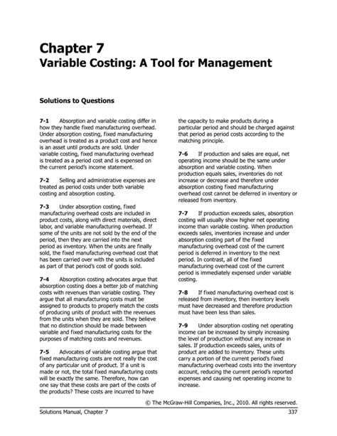 Read Chapter 7 Variable Costing A Tool For Management Solutions To Epub
